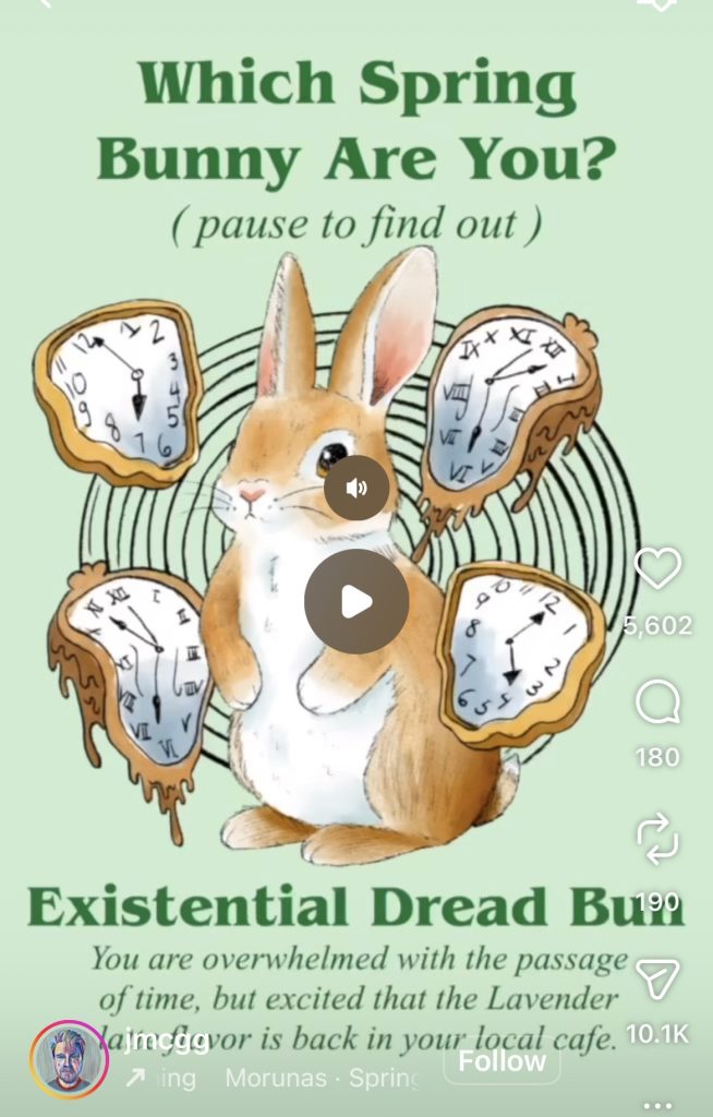 From a dUMb Instagram quiz that I was compelled to try (“which spring bunny AM I?!”)
